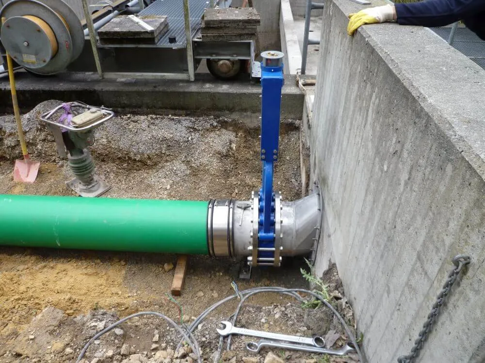 如果闸阀前的水位上升,闸阀就会进一步关闭,这样增加的水压就不会将更多的水排放到污水处理厂。